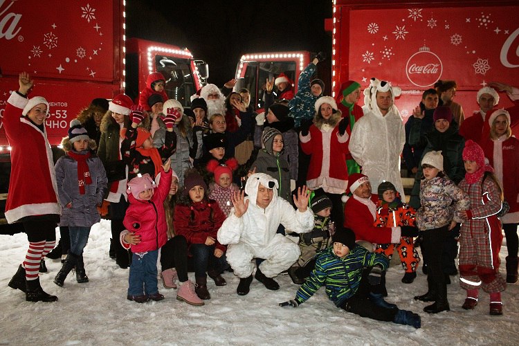 10 декабря 2017 года Рождественский караван Coca-Cola вновь отправился в путешествие по России, чтобы подарить праздник ребятам, оказавшимся в трудной жизненной ситуации. Каждый год сотрудники и партнеры Системы Coca-Cola в России меняют строгий деловой дресс-код на костюмы новогодних героев, самостоятельно готовят подарки и отправляются в путешествие по всей России – от Санкт-Петербурга до Владивостока. Ежегодно при поддержке Coca-Cola Россия проходят благотворительные ярмарки и аукционы в самых разных городах, а Рождественский караван стал доброй новогодней традицией.