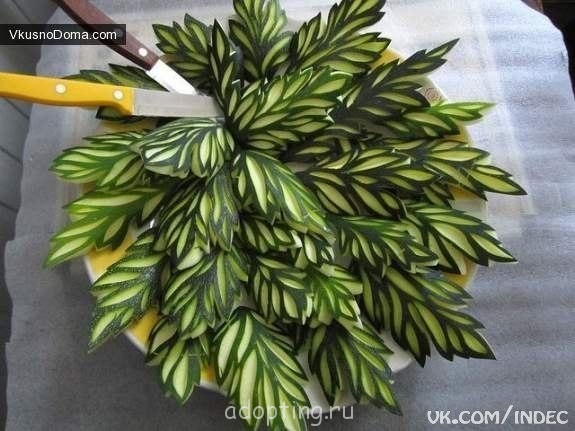 Кочан капусты весом 2 кг нарезать (в этом большая фишка) сначала широкими полосками, потом их поперек, чтобы получились широкие (3х3 или чуть больше) квадраты или прямоугольники (как Бог на душу положит, но ни в коем случае не шинковать).