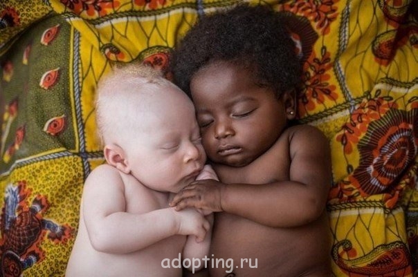 Трехнедельный малыш-альбинос дремлет, прижавшись к своему двоюродному брату.