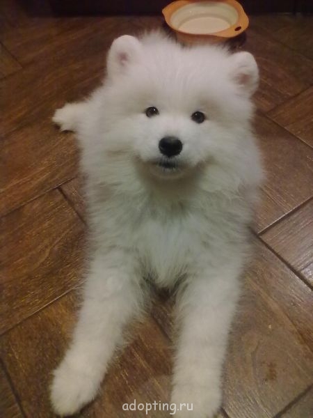 Сестра собачку купили. Ночевали с собакой у нас, мои насмотрелись, назавидовались. Я же поняла, что не готова заводить собаку. Самоед. 2,5 месяца.