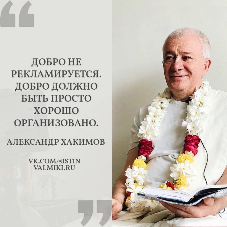 Добро не рекламируется. Добро должно быть просто хорошо организовано. Сейчас в мире хорошо организована жадность. Потрясающим образом целые корпорации существуют. А вот добро не организовано, поэтому мы хотим, чтобы это знание распространялось. Не думайте, что один его распространит, мы все можем это сделать. Сейчас другое время, сейчас не будет такого лидера, который так как Ленин, возьмет всех объединит, знаете, революцию устроит в обществе.