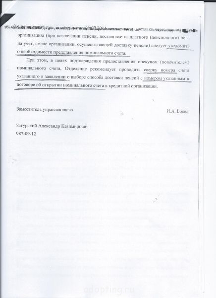 Одновременно информируем, что ОАО "Сбербанк России" направил соответствующие письма в Министерство труда и социального развития России и Пенсионный Фонд России с просьбой до введения нового банковского продукта – номинального счета для зачисления социальных выплат разрешить территориальным подразделениям ПФР и органам социальной защиты населения принимать от опекунов/попечителей заявления о зачислении социальных выплат, в которых указаны номера счетов, открытые в банке на имя подопечных.