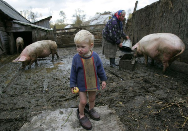 К бабушке в деревню, отвезли на лето...