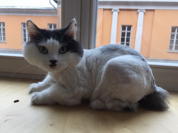 Кот Митя свалялся так, что легче было купить нового, чем вычесать этого. Однако мы решили дать ему шанс, все ж таки не посторонний человек в нашей семье. Мы решили его обрить. Иначе скоро бы лапы припаялись колтунами к животу.