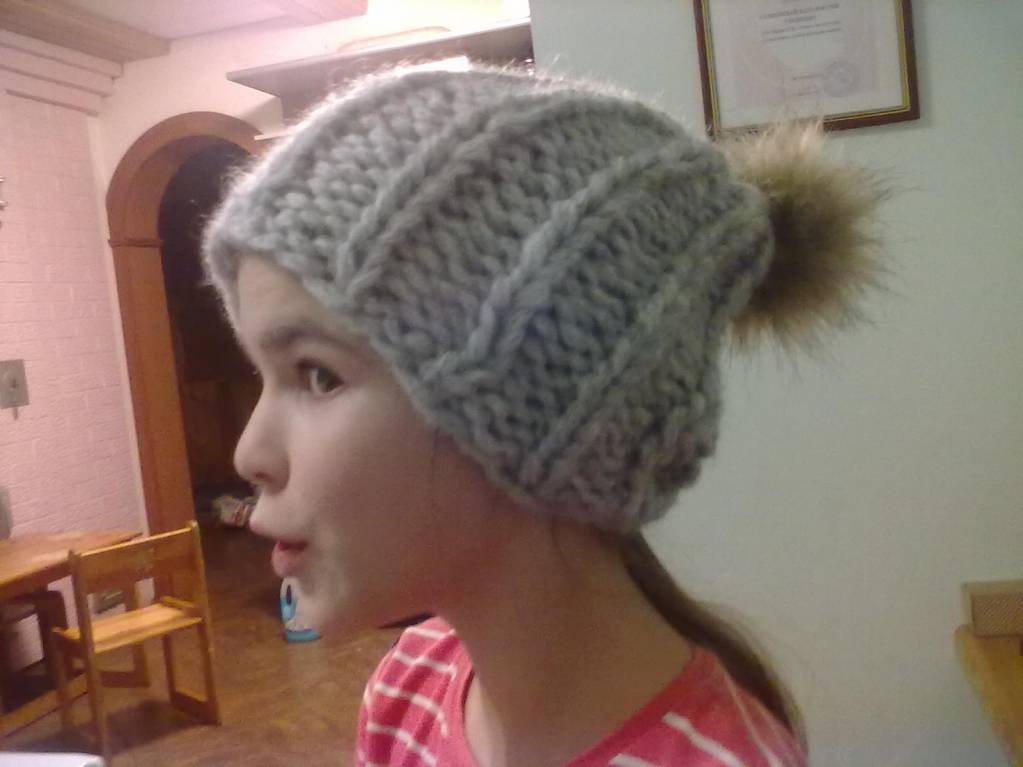 Как-то по весне питерская знакомая попросила меня связать шапку из очень толстой пряжи. Я погуглила, почитала, поудивлялась. Изделие мне не понравилось, но идея зацепила. Позже я нашла пряжу, на мой взгляд более пригодную и симпатичную в изделиях. А сейчас дошли руки, вяжу шапки в подарок на Новый год. Первую забрала старшая дочь, вторую отправлю сестре, Дарья на очереди.