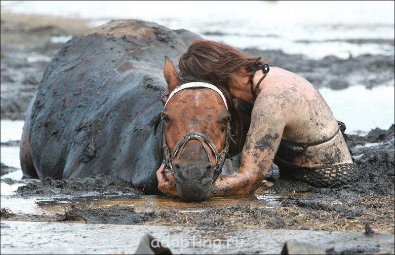 Это – фотоистория о спасении лошади по кличке Астро, которая попала в трясину на берегу залива недалеко от Мельбурна. В течение трех часов, ее хозяйка Николь старалась удержать Астро на поверхности, пока ту постепенно засасывала грязь. А тем временем начался прилив… Еще немного и лошадь может погибнуть!… Николь Грэм со своей маленькой дочерью отправилась на 18-летней лошади по кличке Астро на верховую прогулку по побережью к югу от Мельбурна. Внезапно лошадь оступилась в грязь - так называемый "плавун", трясину неподалеку от залива. 2. Николь отвела на безопасное место свою дочь, а потом вернулась к Астро. Животное весом в полтонны постепенно засасывало в трясины. 3. Астро быстро тонул, а все попытки ее хозяйки вытащить лошадь из трясины привели к тому, что ее еще больше засасывало. К тому же начался прилив и совсем скоро лошадь могла утонуть. 4. Дочь Николь побежала к их автомобилю и вызвала подмогу. Николь успокаивала Астро, стараясь старалась удержать ее на поверхности, пока не приехала помощь. 5. Кроме команды ветеринаров прибыла группа пожарных. 6. Пожарные использовали шланги и лебедку, но долгие попытки так и не увенчались успехом. 7. Один из местных фермеров дал свой трактор, для того, чтобы вытащить из трясины лошадь. 8. При помощи вертолета и трактора в конце концов, все-таки, удало вытянуть Астро на сушу. 9. После трех ужасных часов спасателям удалось вытянуть Астро из трясины. 10. Грэм сказала: "Это было ужасно. Было очень больно смотреть на то, что моя лошадь устала бороться." 11. Все могло закончится очень печально, если бы не мужественная хозяйка лошадки и вовремя подоспевшая группа спасателей. 12. Они успели. Как в кино, в последние минуты...