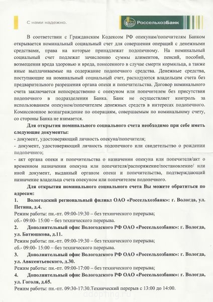 Опекунам г. Вологда велено в срочном порядке открыть номинальные счета. Банк выбрали "сверху", не особенно учитывая реалии. 800 опекаемых и 4 офиса банка. На оформление одного счета уходит до 40 минут, в офисах битва, родители торопятся потому что январские пособия пойдут уже на вновь оформленные счета. По районам решили сообщить после январских каникул. Поскольку я в курсе новшеств, поехала оформлять счета своим подопечным. У нас в райцентре 1 офис и 155 опекаемых ( или семей?). Простояла полтора часа, в итоге потребовали распоряжение о назначении меня опекуном. У меня в деле такого распоряжения не оказалось. В опеке тоже не нашли. Выяснили, что распоряжения начали выдавать несколько позже моего оформления в ПС. Инспекторы готовы соорудить данное распоряжение, но пока заняты. Все застопорилось.
