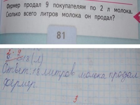 Третий. На каникулах мелкий решает математику, просит помощи в задаче. Читаю, предлагаю решить уравнением. Он заявляет, что педагог запрещает им так делать. Мыслите иначе.