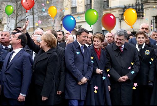 Ну вот где тут скорбь? Шо это за траурный марш с улыбками? Дорисовав шарики....получаем в реале первомайскую тусовку.
