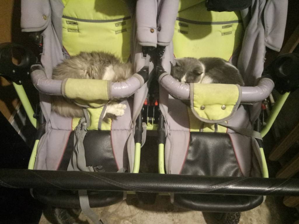 Представила нашу лошадку в сумке. И залезла бы, пыталась бы попу, хвост и лапы поджать. Она сейчас, на пару с котёнком, совсем себя малышкой считает. Скачет вслед за кисой, попа выше головы, только топоток по линолеуму. Собака иной раз не рассчитает, то в шкаф, то в дверь влетит. Пытается залезть в кошкин домик и видимо не понимает почему не может влезть. Любят друг дружку. Кошка на задние лапы встанет, собачью морду лапками обнимет и вылизывает. Когти никогда не выпускает. И собака, если кошка уснёт на ней, терпит неудобства, но не встаёт. Такие забавные. С британочкой собака так не чудила, нейтралитет был. Теперь, стоит позвать "кис-кис"- бегут вприпрыжку два котёночка.