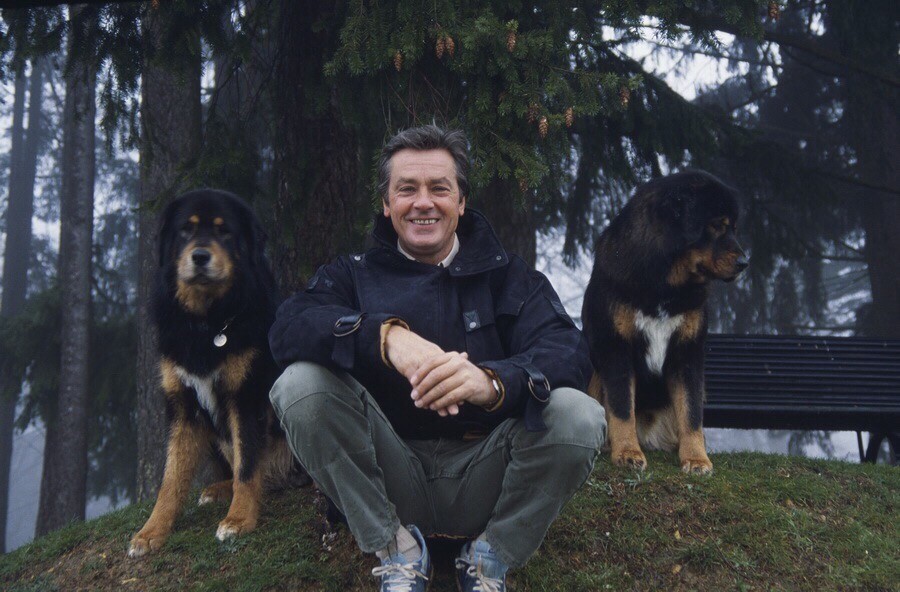 Любовь Алена Делона к собакам с детства. Он рассказывает, что первой его собакой была доберманша по кличке Гала. «Однажды я на неё накричал и даже ударил по заднице. Она села и взглянула на меня. Я увидел, что она плачет. С тех пор я все понял, и теперь мои собаки всегда улыбаются». «Меня всегда трогают собаки, которые находятся рядом с бомжами на улице. Им всё равно, что их хозяин — бомж.