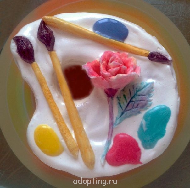 Для палитры первый как раз подойдет! Это классический медовик, когда постоит и пропитается, просто тает во рту. На что я к медовикам равнодушна, но этот, признаю, очень вкусным получается. Сделаешь без обрезки, прямоугольным по размеру противня и сверху украшай как хошь - можно из цветного мармелада вырезать типа кружочки краски, крем покрась красителями и мазками выдави из шприца.
